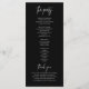 Guide your guests through your special day with this elegant minimalist black wedding ceremony program. Featuring a sleek black background, modern white script, and clean typography, this design perfectly complements black-tie, monochrome, or contemporary weddings. Easily customise with your names, wedding date, ceremony order, and special notes. A sophisticated keepsake for guests that pairs beautifully with matching invitations, menus, seating charts, and other coordinating wedding stationery in this collection. Printed on premium paper for a crisp and professional finish.