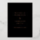 Elegant, minimalist, typographic design with black and warm rose gold real foil lettering. The back of the invitation features black elegant script with your wedding details.