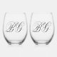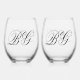 Elegant Minimalist Black White Monogram Wedding Stemless Wine Glass