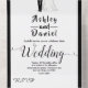 This elegant black-and-white arch wedding invitation is perfect for a modern wedding. The simple design features elegant black calligraphy and a bride and groom illustration on a clean white background.