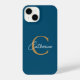 Elegant Minimalist Blue and Gold Script Monogram iPhone Case