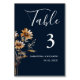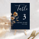 This classic whimsical Navy blue wildfloral wedding table number is perfect for a modern event. The design consists of green, yellow, white, mustard, and green wildflowers encircled by foliage.