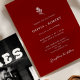 Deep red wedding invitation with photo on the back, a bold and romantic choice for couples planning a dramatic, elegant, or winter-inspired celebration. The front of the card features a rich crimson red background contrasted with crisp white text in a classic serif and modern script font combination, along with a delicate botanical motif that adds organic detail without detracting from the formal tone. This invitation is ideal for evening weddings, luxury venues, or romantic fall and winter ceremonies where deep, passionate tones set the mood. The back includes a full-size custom photo that allows couples to feature an engagement portrait or personal moment, adding a heartfelt and intimate element to the sleek design. Clearly organised editable text make personalisation easy while preserving a polished layout. With its refined colour scheme and sophisticated style, this two-sided wedding invitation is perfect for couples seeking a timeless yet striking design that beautifully balances tradition and modern elegance. Available as printed cards or an instant digital download.