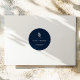 Add an elegant finishing touch to your wedding favours, invitations, or save-the-dates with this minimalist navy blue botanical wedding sticker. Featuring a deep navy background with a simple white botanical sprig illustration, this circular sticker design offers a modern and refined aesthetic perfect for contemporary weddings. The layout includes space to personalise the couple's names, wedding location, and date, making it ideal for sealing envelopes or decorating favours with a cohesive and sophisticated look. The understated botanical element adds a natural, organic feel that complements garden weddings, urban venues, or minimalist themes. Whether used for custom packaging, wedding welcome bags, or stationery accents, this personalised round wedding sticker brings timeless style and professional polish to your big day.