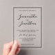 Elevate your wedding with our transparent acrylic wedding invitation, a perfect blend of elegance and modern minimalism. Crafted with a sophisticated, clear design, this invitation features stunning calligraphy script paired with a sleek, contemporary font. The acrylic material adds a unique, luxurious touch, creating an unforgettable first impression for your guests. Ideal for modern and upscale weddings, this invitation exudes timeless simplicity, allowing your wedding details to shine with style. Personalise it to make it uniquely yours, from custom text to various size options. Acrylic wedding invitations are trending for their refined and unique aesthetic—perfect for couples seeking a minimalist yet elegant vibe. Make your wedding day unforgettable, starting with this beautiful, high-quality invitation. Perfect for any theme, from classic and formal to contemporary chic.