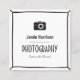 Modern and elegant minimalist design in black and white to customise for photographers. Simple camera icon and trendy frame border detail.