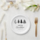These elegant Minimalist Christmas Tree Paper Plates feature simple black-and-white Christmas tree illustrations surrounded by snowflakes. You can personalise these paper plates by adding a custom greeting and your family name.