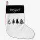 This elegant Minimalist Christmas Tree Stocking features simple black-and-white Christmas tree illustrations surrounded by snowflakes. You can personalise this Christmas stocking by adding your name.