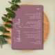 Create a romantic and refined dining experience with the Elegant Minimalist Dusty Pink Big Names Wedding Menu. Featuring a soft dusty pink background with crisp white text, this sophisticated design includes well-organised sections for appetizers, salads, entrées, and desserts. The left side prominently displays the couple’s names, adding a personal and stylish detail. Perfect for modern, romantic, or boho weddings, this menu blends elegance and simplicity, making your reception tables look effortlessly chic.