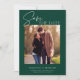 An elegant emerald green save the date photo announcement featuring a modern script font and simple minimalist design. This unique save the date card is a trendy way to announce your wedding. THE SAMPLE PHOTO IS NOT INCLUDED. REPLACE WITH YOUR OWN PHOTO BEFORE ORDERING.