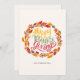 Elegant Minimalist Fall Autumn Leaves Wreath Holiday Card