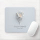 Custom White Blue Minimalist Floral Mouse Pad personalized with your name, business name, logo, or custom text — designed for an elegant and modern desk aesthetic.