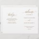 Welcome your guest with this exquisite wedding ceremony program, featuring gorgeous modern hand written script calligraphy details in faux gold foil, rest of text in golden hues. Personalise wording in all sides. NOTE: this programs arrive flat and require folding down the middle to assemble. The default value paper is recommended. Ability to delete top and bottom lines if desired by selecting "customise further". For a clean fold we suggest the use of inexpensive bone folder. The size refers to the program "before" it's folded. Part of our "Elegant Calligraphy Minimalist Wedding" collection with a variety of coordinating products available.