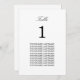 Elegant Minimalist Guest Names Table Card, easy to personalise in the online personalisation template in order to show the table number for the appropriate table and the guest names for that table. The design copies across to the other side of the card automatically so as to help guests to find their table from either side of the table. This table card design features stylish black text in a simple plain minimalist layout, whilst also incorporating space around the text elements to allow for choice of display methods such as hanging or framing the card.
