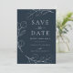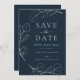 Elegant Minimalist Leaves Navy Blue Wedding Save The Date