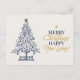 Elegant navy and gold Christmas postcards, a sophisticated way to send warm wishes with refined style and modern simplicity. Featuring a hand-drawn Christmas tree in deep navy blue with gold ornaments and topped with a gold star, this minimalist yet festive design evokes timeless holiday charm. Alongside the Christmas tree, the front includes an elegant typographic greeting in alternating navy and gold script that reads “Merry Christmas, Happy New Year!” with eye-catching balance and clarity. On the reverse side, add your personal message or leave it blank to hand write your message, creating a seamless blend of design and functionality. Perfect for holiday mailing without envelopes, this postcard is ideal for families, couples, or professionals seeking an upscale way to spread cheer. The clean off-white background enhances the contrast and makes the design pop, delivering a sleek and polished look that stands out in any holiday mail stack. It’s an excellent choice for those wanting modern elegance in their Christmas greetings.