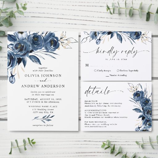 A perfect choice for couples looking for a navy blue wedding envelope, floral envelope design, or modern elegant wedding stationery with a cohesive and stylish feel.