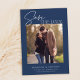 An elegant navy blue save the date photo announcement featuring a modern script font and simple minimalist design. This unique save the date card is a trendy way to announce your wedding. THE SAMPLE PHOTO IS NOT INCLUDED. REPLACE WITH YOUR OWN PHOTO BEFORE ORDERING.