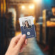 Simple, stylish corporate ID badge which can easily be personalised with your employee's ID photo, name, position and barcode. The stylish design features modern minimalist layout and a block banner in stone grey to stand out from the crowd.