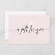 This sophisticated gift certificate design features a soft pink background with a delicate, flowing script that reads “a gift for you,” embodying simplicity and elegance. The minimalist layout with clean lines on the reverse side offers a refined space to customize details, perfect for high-end beauty salons, spas, wellness centers, and boutique businesses. Ideal for brands that appreciate understated elegance, this certificate provides a timeless, stylish option for gifting occasions. Personalize with ease to reflect your business’s identity and make every gift feel extra special.
