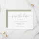 Elegant modern sage green wedding save the date cards with a modern script font. Matching items available. Custom requests welcome.