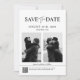 This editable save the date template is a modern black and white photo wedding announcement with minimalist typography, perfect for couples looking for a stylish and easy-to-personalise design.