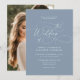 Elegant Minimalist Script Dusty Blue Photo Wedding Invitation