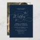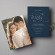 Elegant Minimalist Script Navy Blue Photo Wedding Invitation