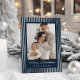 Make a luxurious and traditional statement this holiday season with this magnificent striped photo card. The deep navy blue background is covered in crisp, vertical stripes, all shimmering brilliantly in luminous silver foil. Your favorite family photo is elegantly framed in the center, with the handwritten "Merry Christmas" script also glowing in beautiful silver foil, giving your card an instantly upscale and festive look.