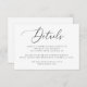 This refined wedding details card features a minimalist white background, elegant calligraphy style script for the header, and classic serif type for the main text. Perfect for sharing hotel accommodations, website information, or other important wedding logistics with guests. The timeless black and white design complements a wide range of wedding themes, from formal and black-tie to modern and minimalist.