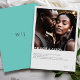 Celebrate your special day with our elegant minimalist wedding invitation. Featuring a sophisticated almost white-grey background, this invitation showcases your favorite photo in the foreground, beautifully personalized with your names elegantly overlapping the bottom of the image. Below the photo, you’ll find all the essential wedding details neatly presented. Your initials are subtly placed on the bottom right for an added personal touch. The back of the invitation is a stunning teal to accent the stationery, with the initials tastefully printed in the center. This classy design perfectly balances simplicity and elegance, making it an ideal choice for modern weddings.