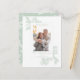 Modern minimalist design featuring delicate white line-drawn Christmas holly and pine on mint background photo template with editable text fields. Back features complementary pattern background, blank label, custom typography and editable text fields for your name, address and greeting.