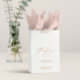 This Elegant Minimalist White Wedding Gift Bag is the perfect way to show your appreciation to your wedding guests. This gift bag is perfect for filling with wedding favours or other small gifts for your guests to take home as a reminder of your special day. Say "thank you" in style with this elegant and sophisticated gift bag. Designed to coordinate with for the «Chloe» Wedding Invitation Collection. View the collection link on this page to see all of the matching items in this beautiful design.