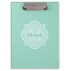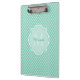Elegant Mint Green Quatrefoil Monogram With Name Clipboard