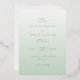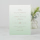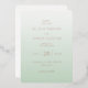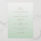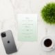 This wedding invitation features a minimalist and modern design with soft, rounded corners and a gentle gradient background transitioning from pale mint green to a slightly darker shade. The colour palette of muted pastels creates a serene and elegant atmosphere, while the clean lines and smooth gradients enhance its polished look. Typography is the main visual element, using a mix of delicate script and bold serif fonts for a sophisticated touch, making it perfect for a formal event. The layout is centred and vertically aligned, ensuring readability and a balanced composition that conveys calmness and refinement.