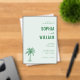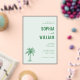 This elegant wedding invitation features a minimalist design with a soft mint green background, creating a serene and sophisticated atmosphere. The layout is clean and well-balanced, showcasing the names in bold, uppercase letters with a decorative line separating them, while a simple palm tree illustration adds a tropical touch. The typography combines serif fonts for a formal look with a cursive "and" for a romantic flair, making it perfect for a stylish and understated celebration. Ideal for couples seeking an inviting yet refined aesthetic, this invitation sets the tone for a memorable event.