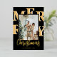 Elegant Modern 2 Photo Merry Christmas Script Foil Holiday Card.