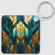 Elegant Modern Abstract Gold Teal Geometric Key Ring