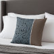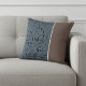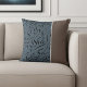 This throw pillow features an exquisite design with abstract line art in black, set against a backdrop of mineral green, grey, and medium taupe in an elegant pattern. Two thirds of the pillow front features a pattern of flowing, black, calligraphic-like lines against a muted teal-grey background. These lines curve and intertwine, creating an abstract and artistic effect that contrast nicely with the solid, muted brown on the final one third of the pillow cover. Separating the two sections is a thin, vertical stripe of off-white or very light grey. The colour palette is subdued, with the teal-grey and brown providing a sense of calm and sophistication. The black lines add a contrasting element, while the white stripe offers a subtle visual separation. The overall composition is balanced and aesthetically pleasing, with the pillow's design creating a modern and stylish look. It is a versatile and stylish accessory that can be used in various settings, such as a living room, guestroom, bedroom, family room, or office space. This chic and artistic piece will undoubtedly enhance your modern decor and add a touch of style and sophistication to any room.