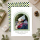 Elegant modern Christmas card with an arch family photo design and a green and white retro check back. A bright, minimalist holiday card that’s easy to personalise with your photo and message for a stylish, timeless keepsake.
