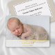 An elegant modern birth announcement card featuring real foil overlay in your choice of gold, silver or rose gold. Upload your own photo to create a unique card celebrating your new baby. To complete simply customise the name, date and birth stats, and add a personal message.