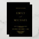 Modern minimalist black and gold foil wedding invitation. Personalise all text and colours in this simple and modern wedding invitation.