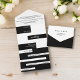 This elegant black and white wedding invitation is perfect for a modern wedding. the simple design features elegant white calligraphy on a black-striped background.
