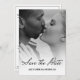 This Simple Black and white modern Save the Date features black elegant calligraphy, black frame white background. At the front add your beautiful photo with white fade effect. Matching products available in our store.