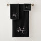 Elegant Modern Black Blush Pink Script Monogram Bath Towel Set