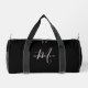 Elegant Modern Black Blush Pink Script Monogram Duffle Bag