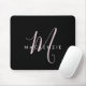 Elegant Modern Black Blush Pink Script Monogram Mouse Pad