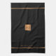 Luxury exclusive looking monogrammed stylish kitchen towel featuring a faux gold copper metallic glitter square and lines over a stylish classy solid black background. +++++++++ Personalise it with your name or family name and monogram name initial.