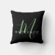 Elegant Modern Black Green Script Monogram Cushion