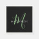 Elegant Modern Black Green Script Monogram Napkins. An elegant green script monogram combined with a clean white san-serif font makes for a contemporary look.